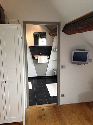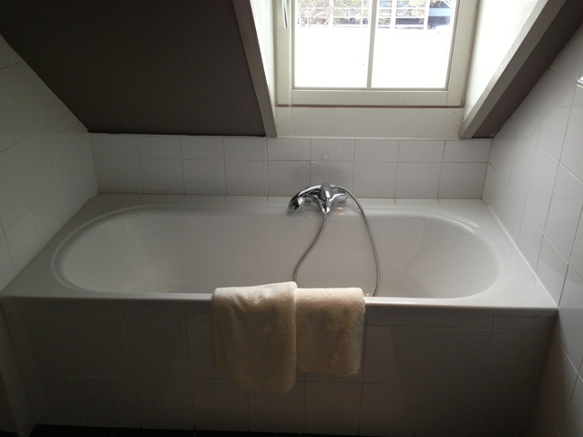 - badkamer met douche/bad combinatie en wasmachine